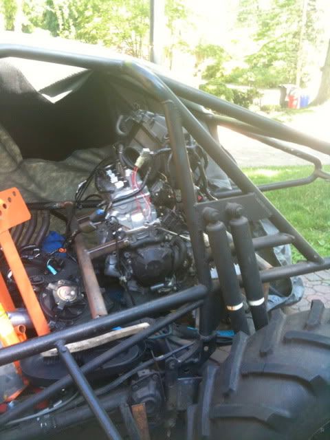 After driving a friends EX500 motorcycle engined buggy I was convinced there was no better option. I was further convinced when a mangled 2004 cbr600RR (~110hp) came up on craigslist for $100less than it would have took to rebuild the stock 42hp motor. So the tranny came out and the bike got cannabalized.